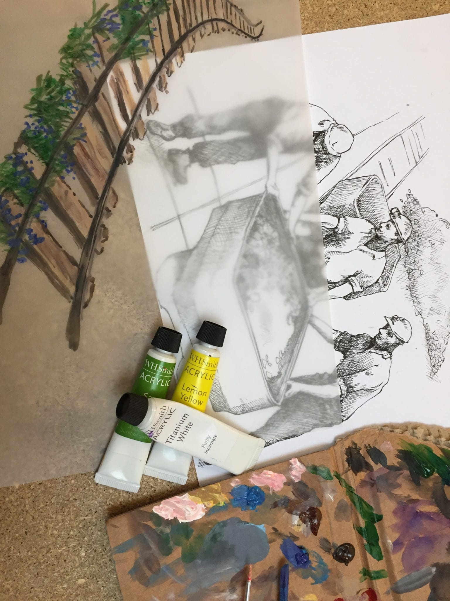 The participants ranged in age from 4 to 84, attending specialized design workshops to help produce the toile de Jouy depicting their local area. I asked some of the Bishop Auckland residents to imagine what a Bishop Auckland Tweed would look like, and master weavers in a reputable Yorkshire mill brought their vision to life. Ultimately, 50 meters of each fabric were produced, and some of the Tweed was used by The Auckland Project for products sold in their gift shops.