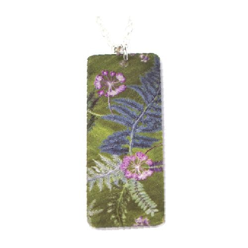 This vibrant botanical design reflects beautifully along these handmade necklaces. My NTS Lime Green print incorporates a pretty background with a trail of colourful flowers printed across the design.