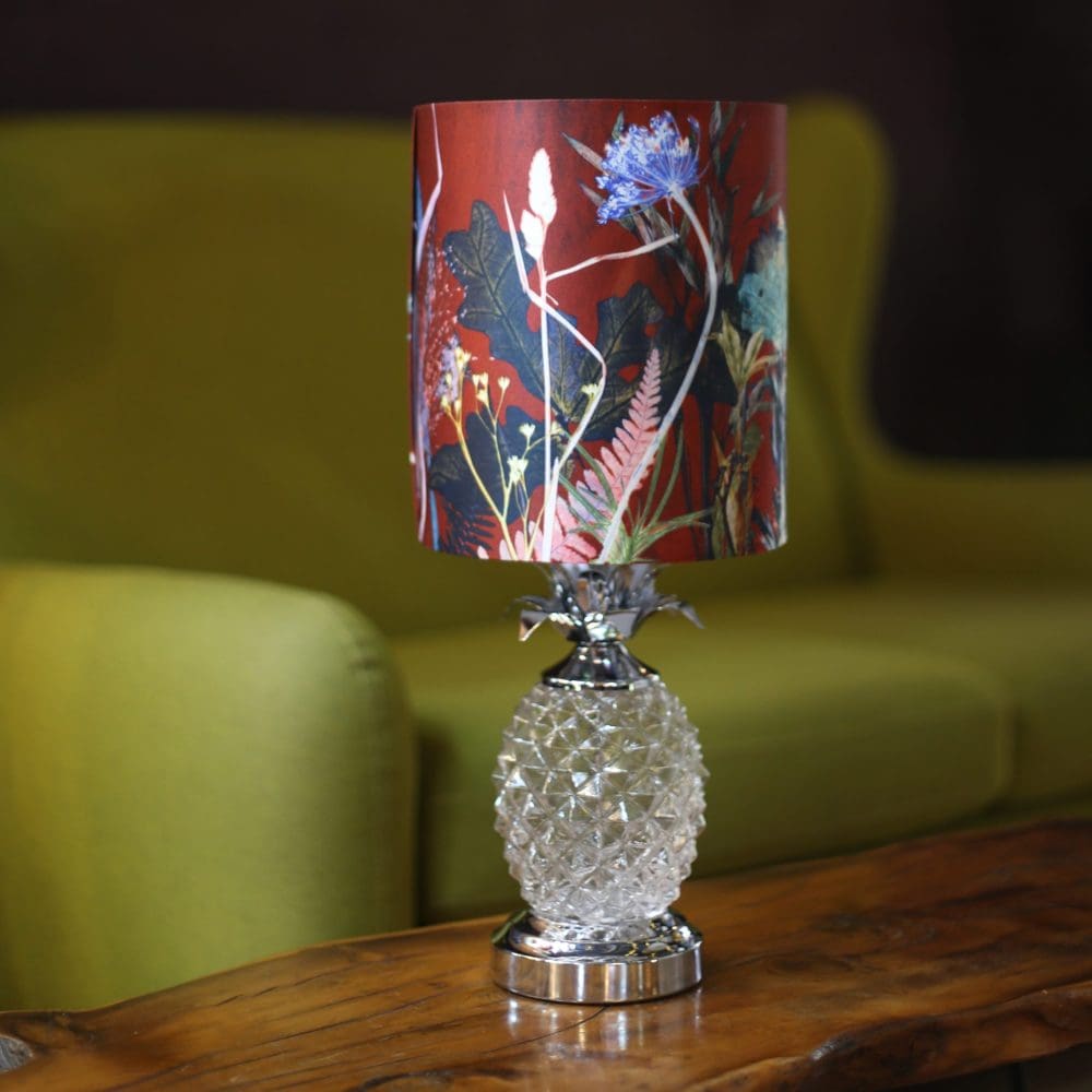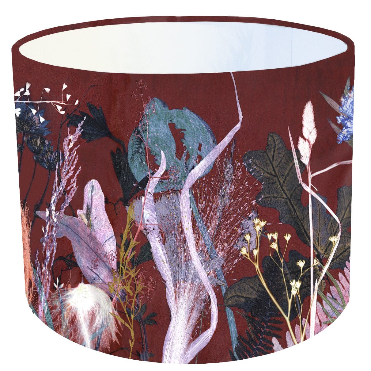 A stunning dark floral print lampshade in our Earthern botanical design featuring a dark background with bright pops of blues and greens. A stunning light shade for ceiling lights and table lamps and a unique addition to your interior lighting.