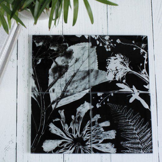 Emphasised by the ebony background, the wispy leaves project a sense of ghostliness, bequeathing print with a spectral quality. Spring Spectre Cow Parsley is a great art centre piece, and when arranged together they form one design, but are equally pleasing to look at and use when split apart into individual coasters. The jewel like quality of the glass gives a 3d feel to the prints which adds texture and life to the flowers and pressings.