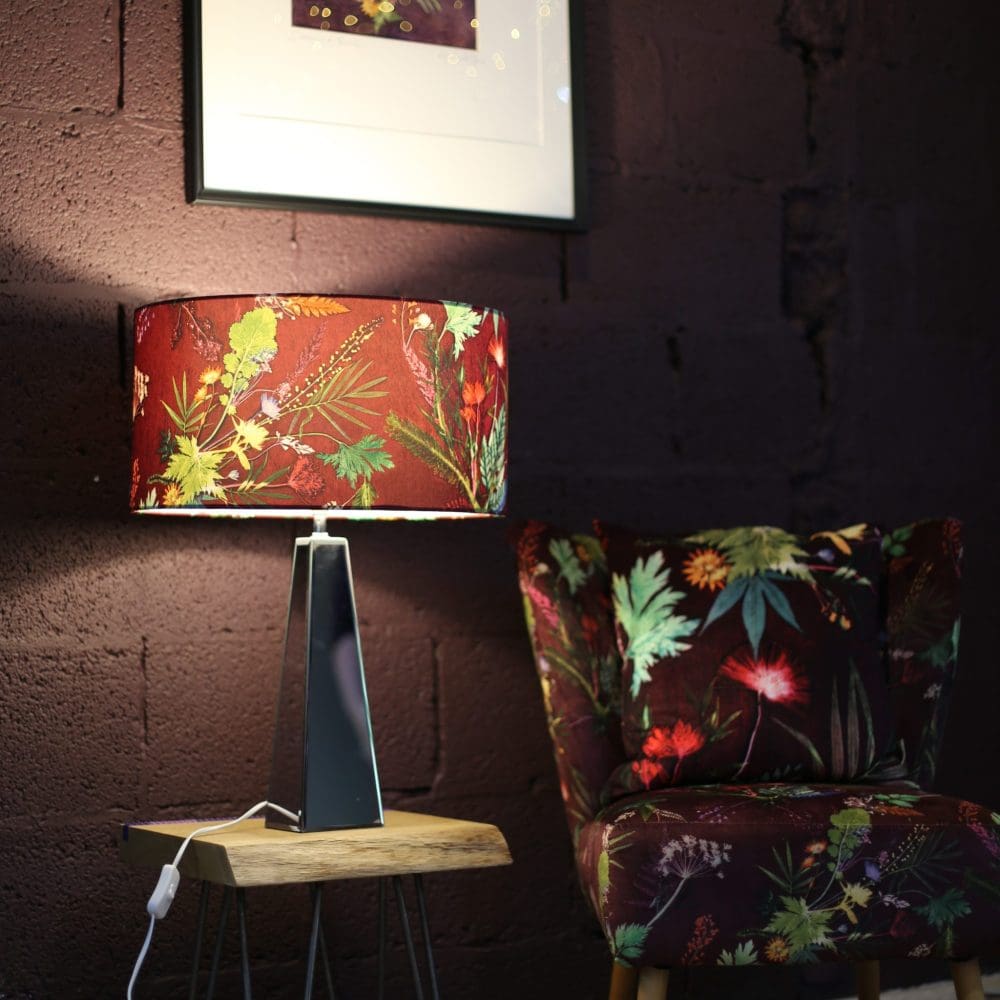 My beautifully botanic lampshades are made in my workshop in the North of England. Handcrafted with British wildflowers and adding colour to any room, my Tropical Wine lampshades make a stunning accessory to any home décor.
